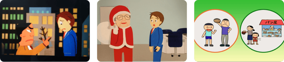 暴力には、3種類あります。殴り合いや戦争など、直接目に見える直接的暴力。差別や貧困などの構造的暴力。それらを支える、目には見えない文化的暴力。その3つの暴力を、パワハラを題材にしたアニメーションで伝えます。